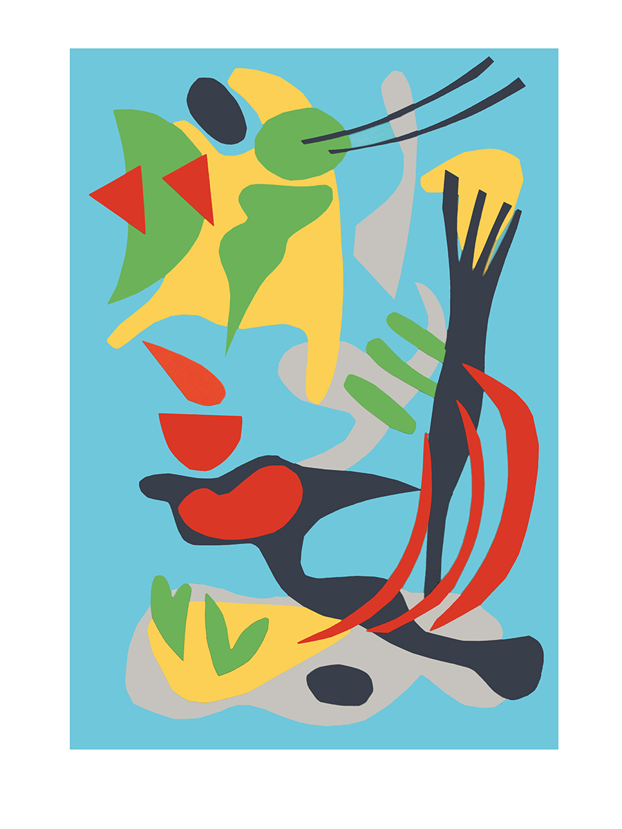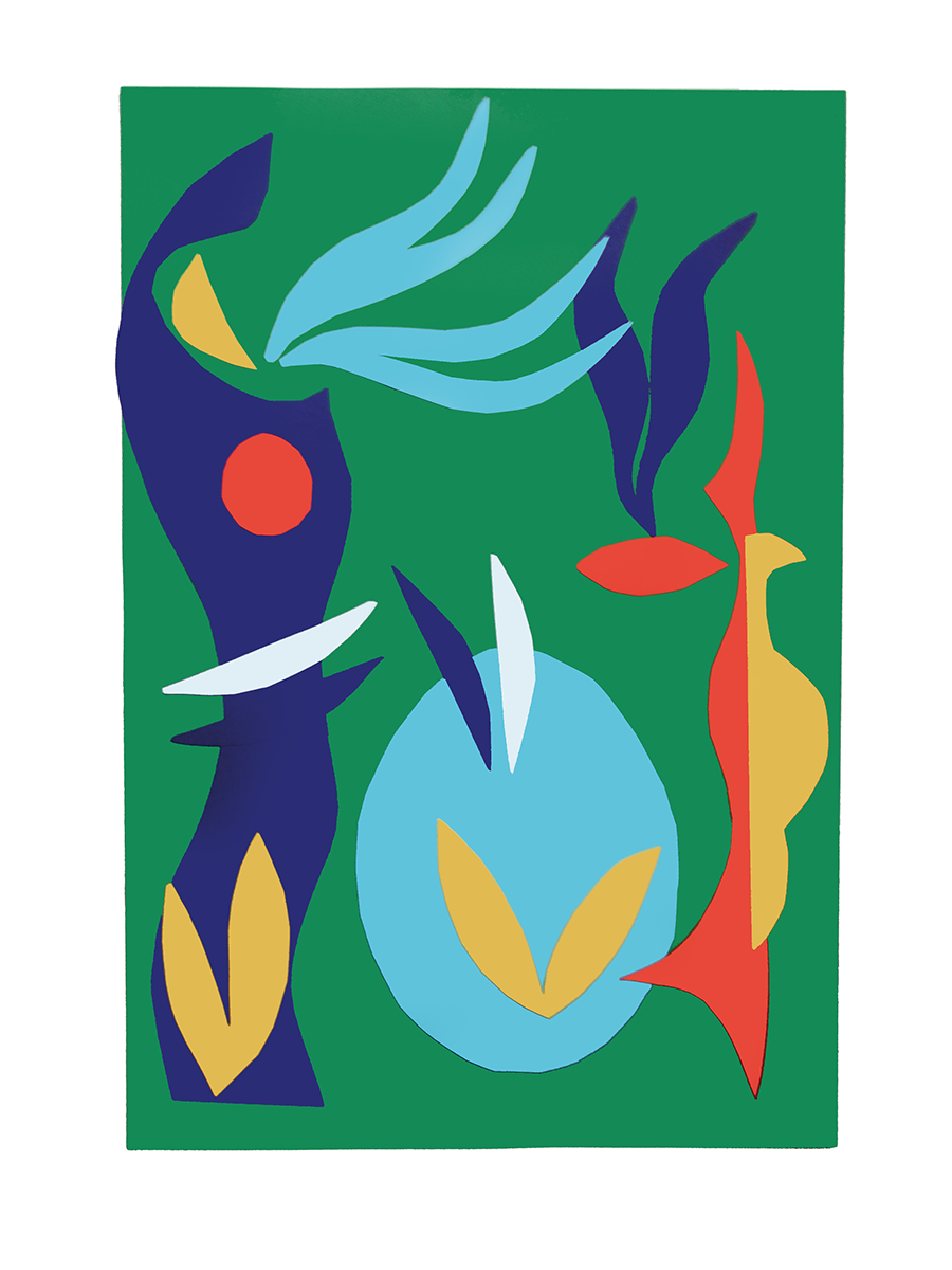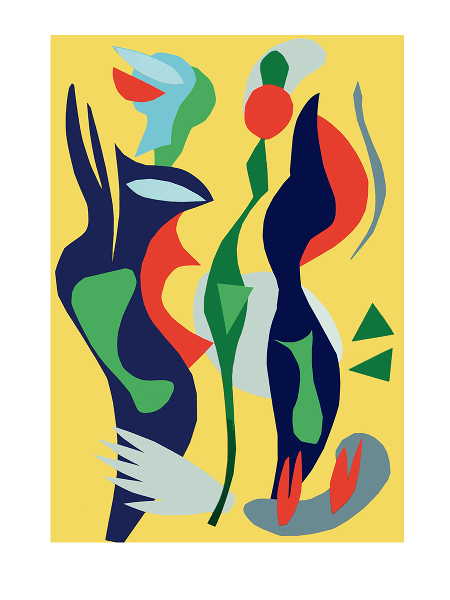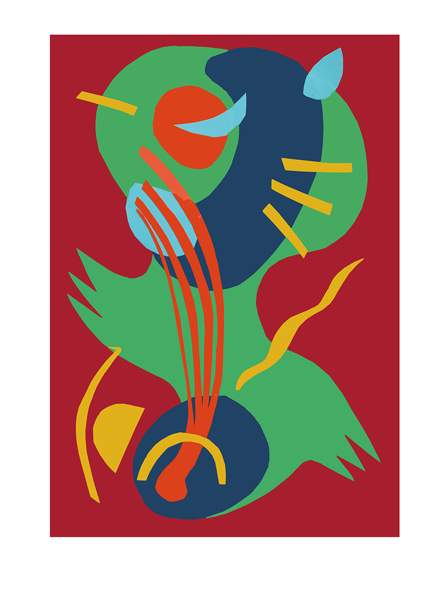 Serie de 12 collages en cartulinas de color realizados durante una larga convalecencia.