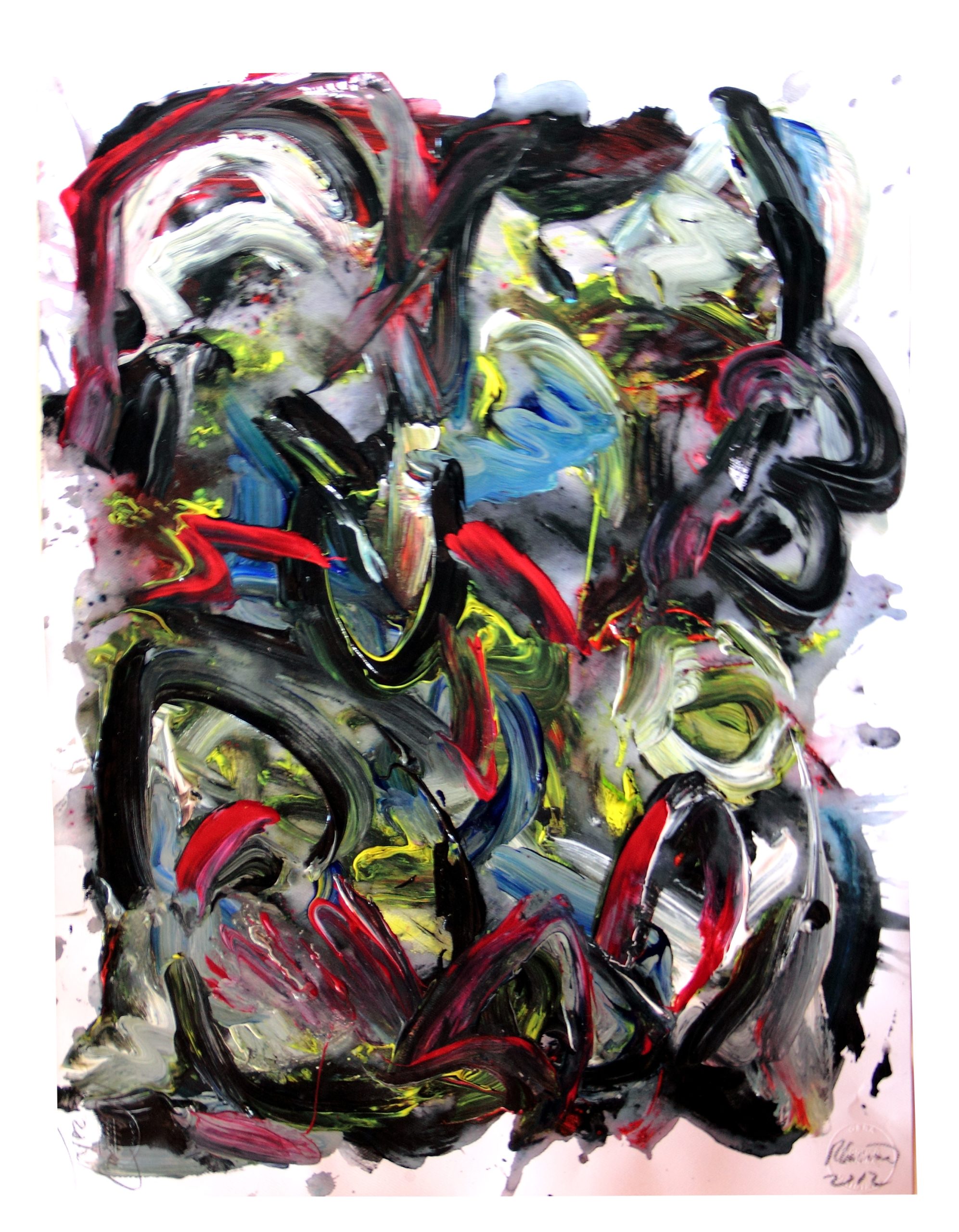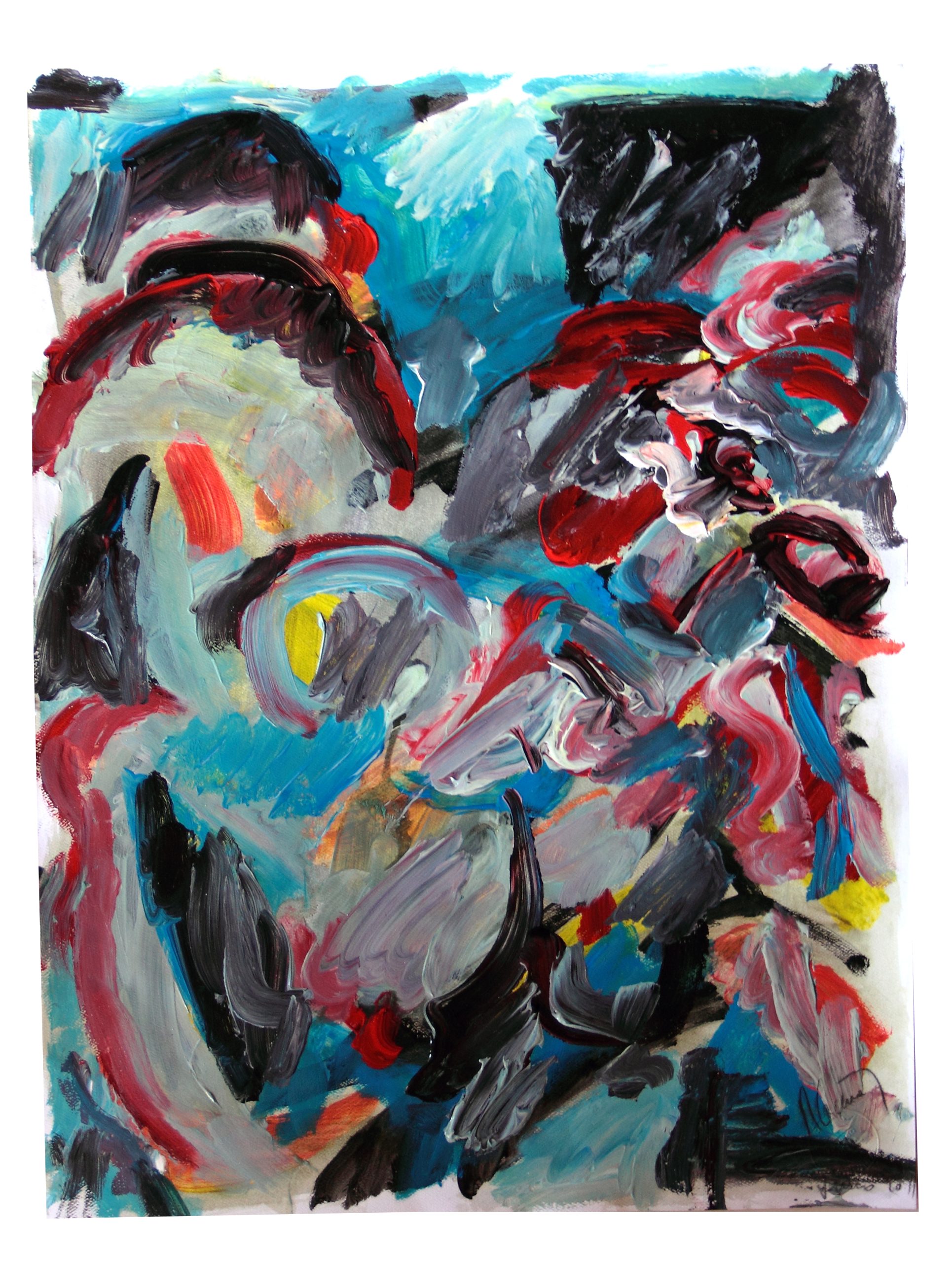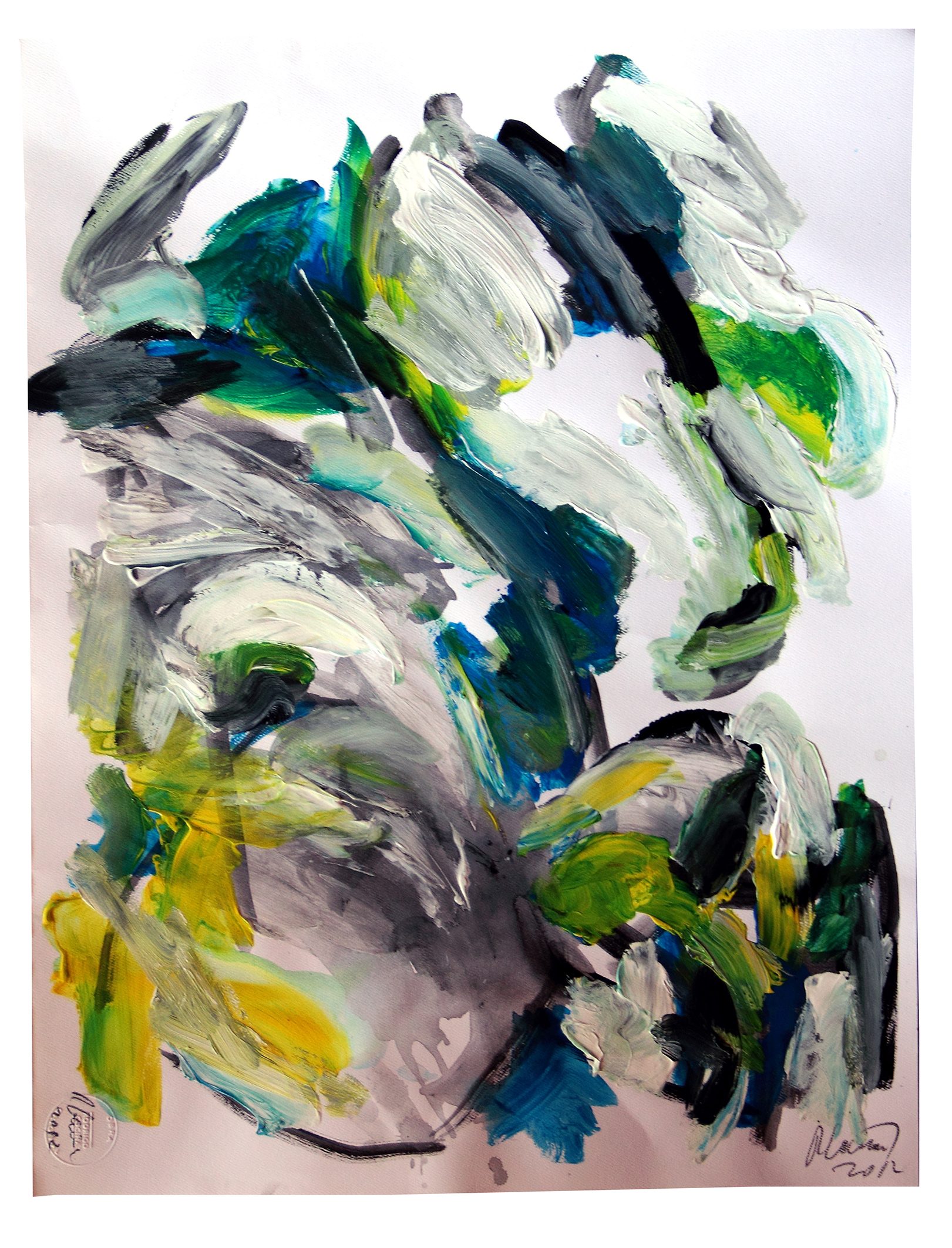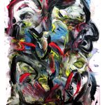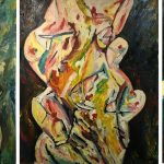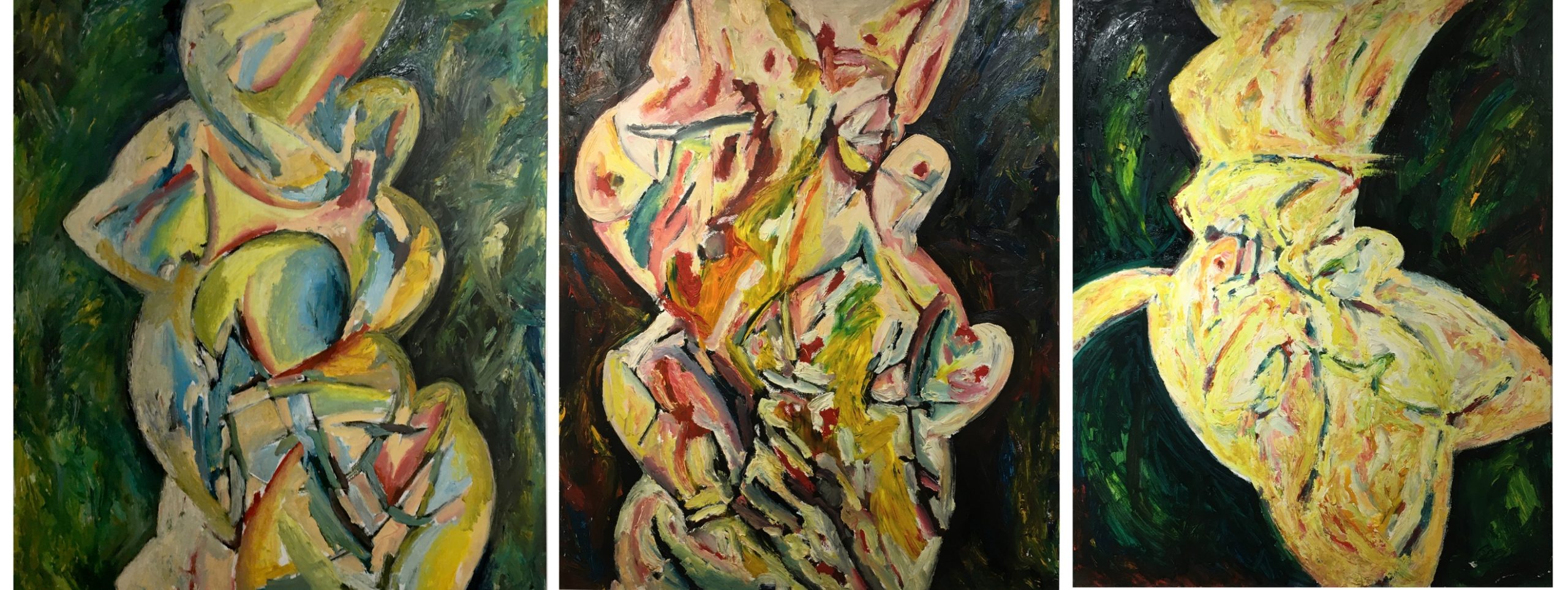 Serie de 60 pinturas en acrílico sobre papel de 62 x 47 cm + tríptico en óleo y acrílico sobre tela de 122 x 92 cm